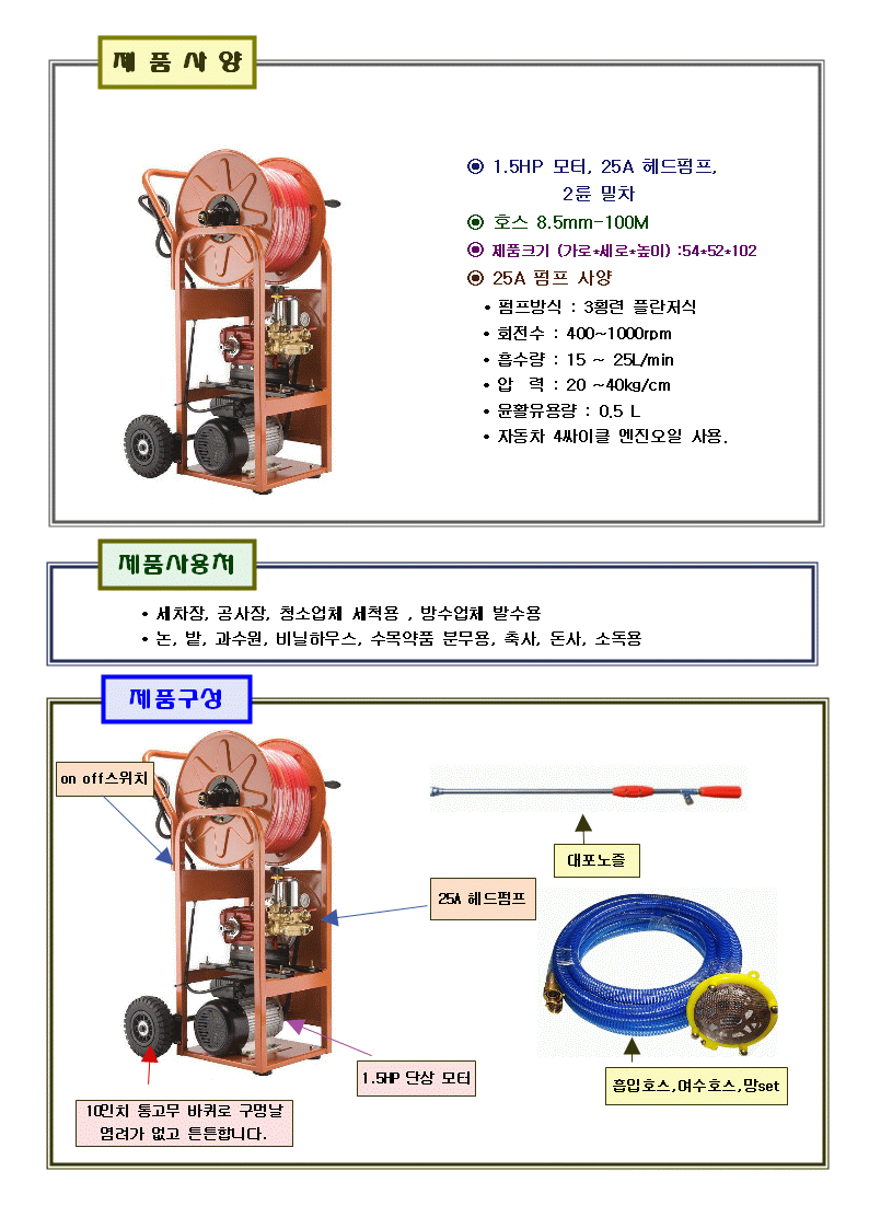 ◈ 과수원, 논, 밭, 방수업체 발수용, 청소업체등에서 주로 쓰이는 제품입니다.