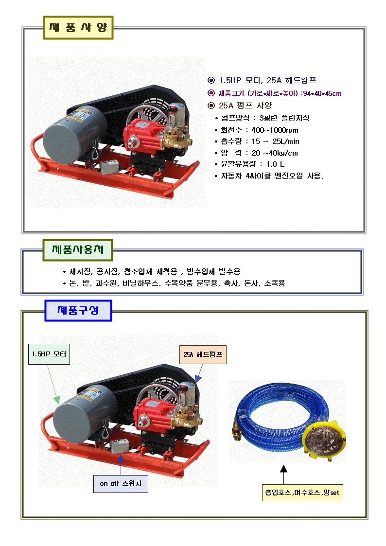 • ◈ 1.5 마력 모타, 25A 헤드펌프 가반형