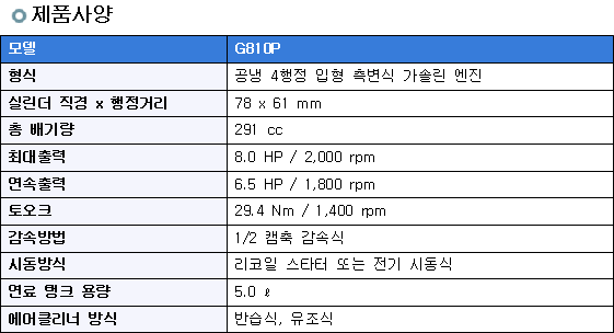 • *형식: 공냉식,4싸이클,가솔린엔진