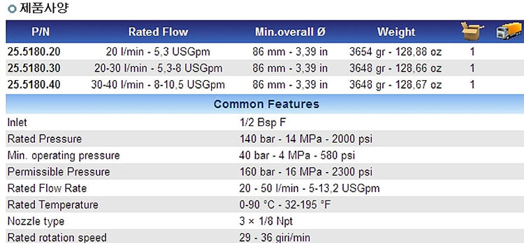 토출량(l/min) : 20~50lpm