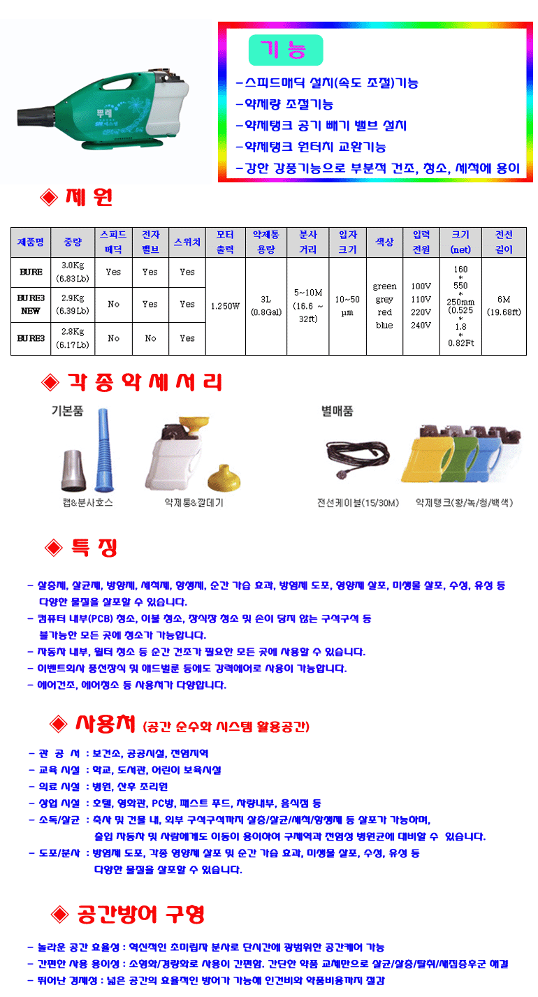 • ◈강력분사와 초미립자형 살포기능으로 미세한 곳까지 침투, 살포가 확실합니다.