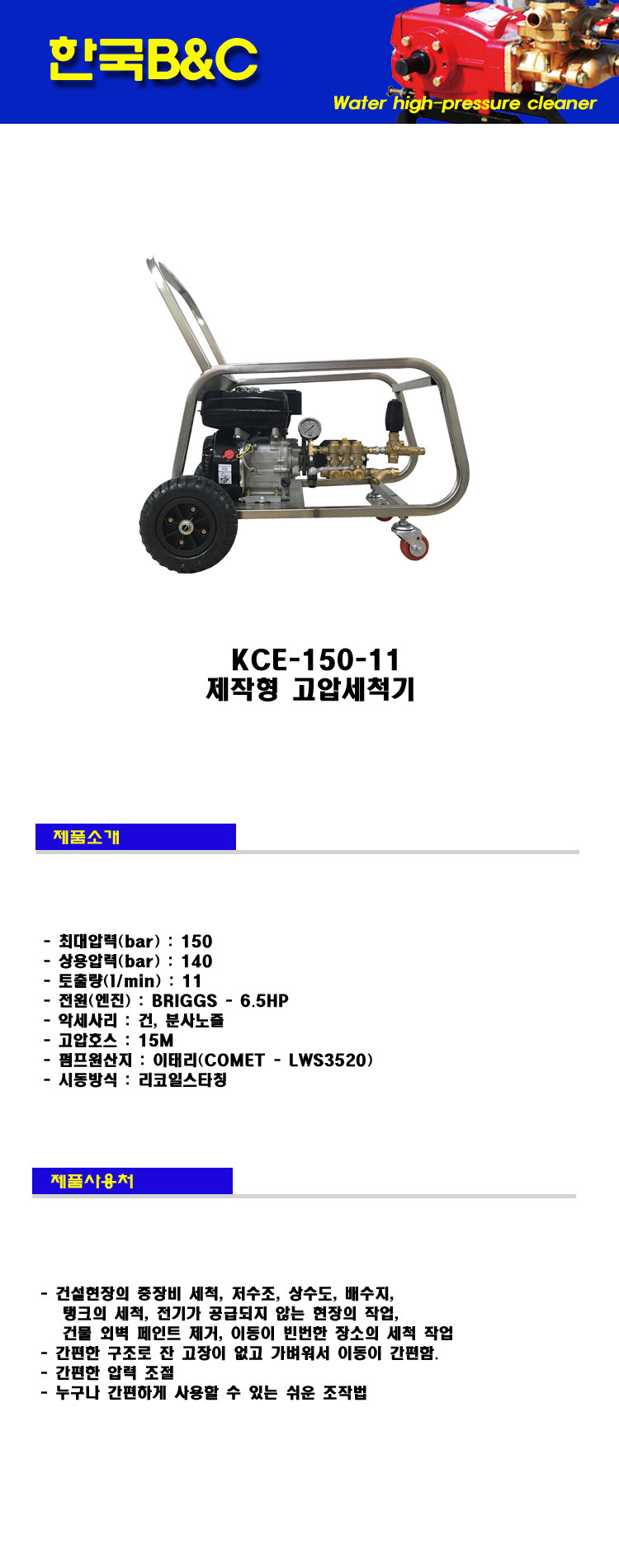 - 전원(엔진) : BRIGGS - 6.5HP