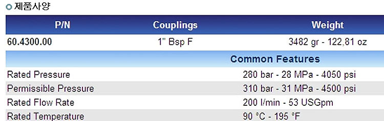 압력(bar) : 310bar