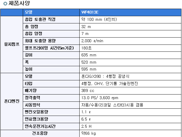 혼다 4인치 양수기 (혼다13HP 자동엔진)