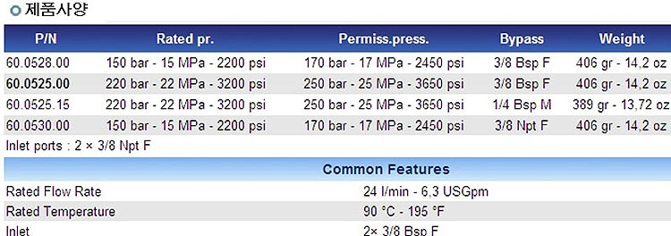 압력(bar) : 170bar
