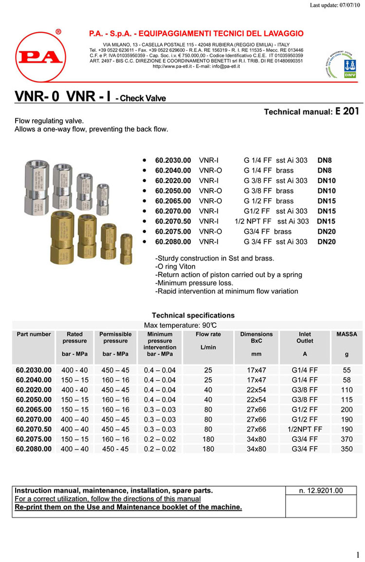 체크밸브 VNR-I