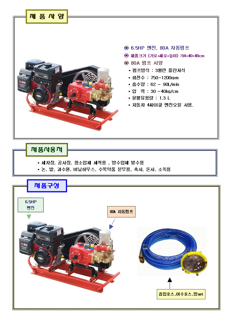 • ◈ 80A 자동 헤드펌프, 6.5마력 엔진 Set