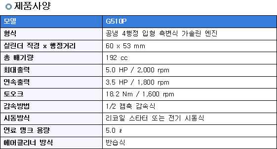 * 동급 최강의 힘과 내구성을 자랑하는 고성능엔진