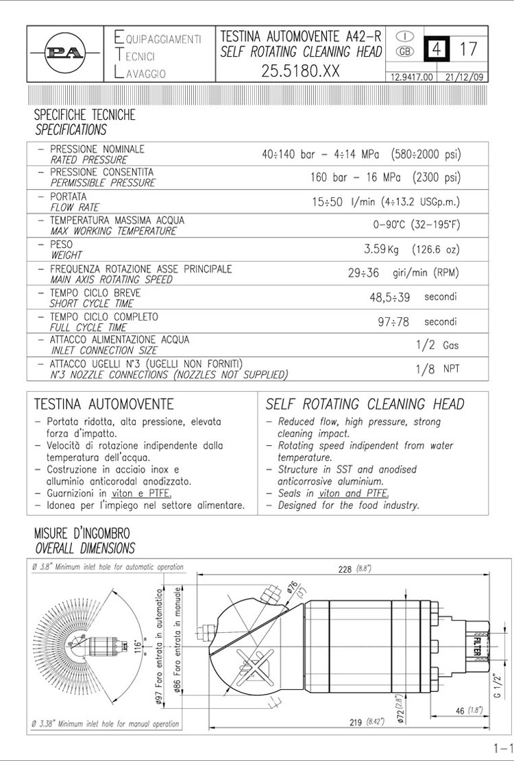 압력(bar) : 160bar